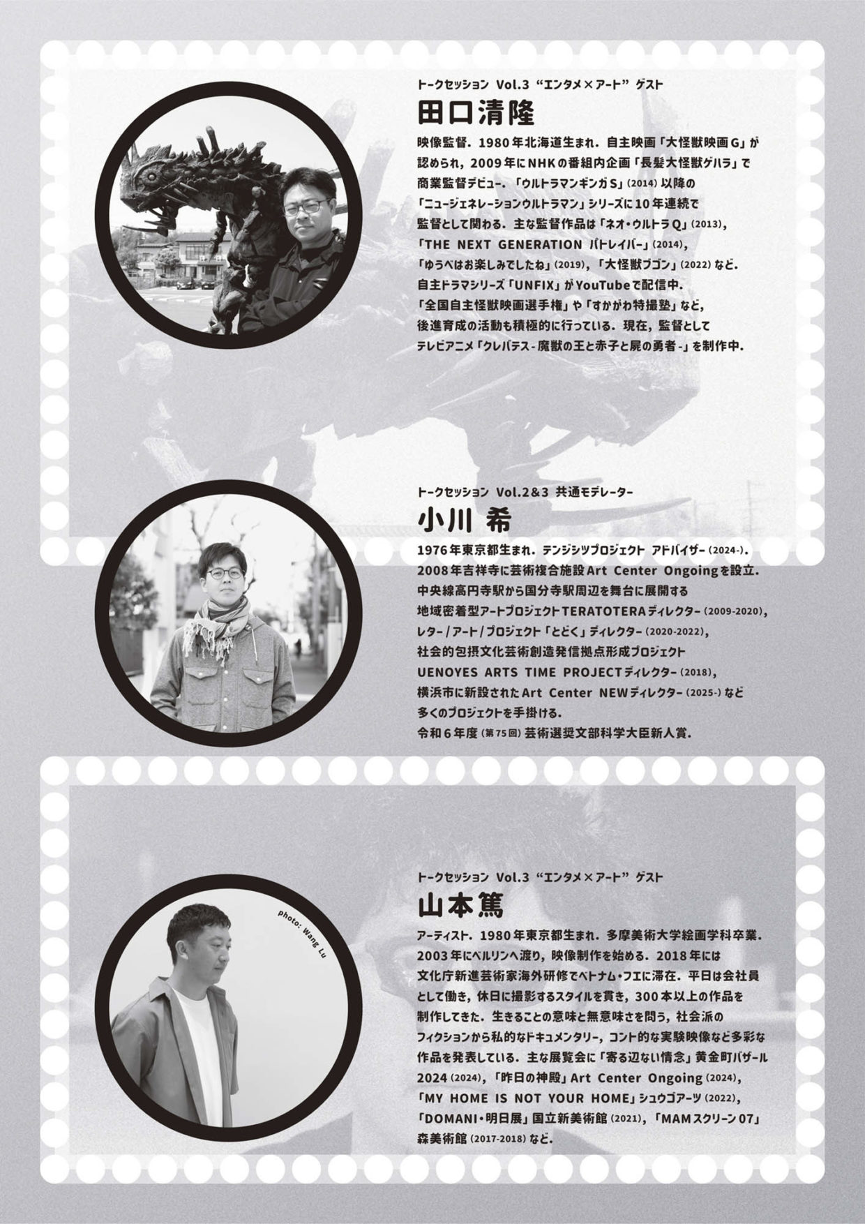 社会派のフィクションから私的なドキュメンタリー、実験映像まで手掛けるアーティスト・山本篤と、『劇場版ウルトラマンX』ほか、特撮映像を手掛ける映像監督・田口清隆をゲストに、両者の映像作品の鑑賞も交えながら語り合います。
